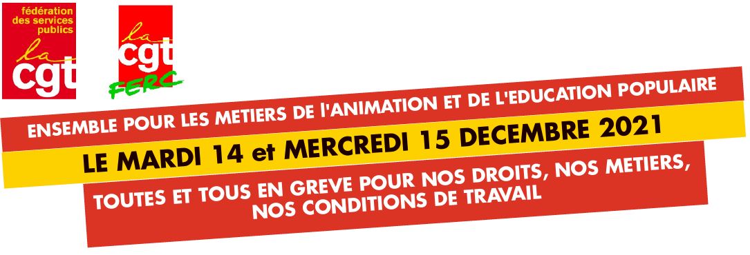 Les 14 et 15 décembre, la FERC CGT (CGT Educ’pop) et la Fédération des Services Publics CGT appellent l’ensemble des salarié.es de l’animation et de l’éducation populaire à la grève, dans le cadre d’une intersyndicale nationale CGT SUD CNT et appellent :